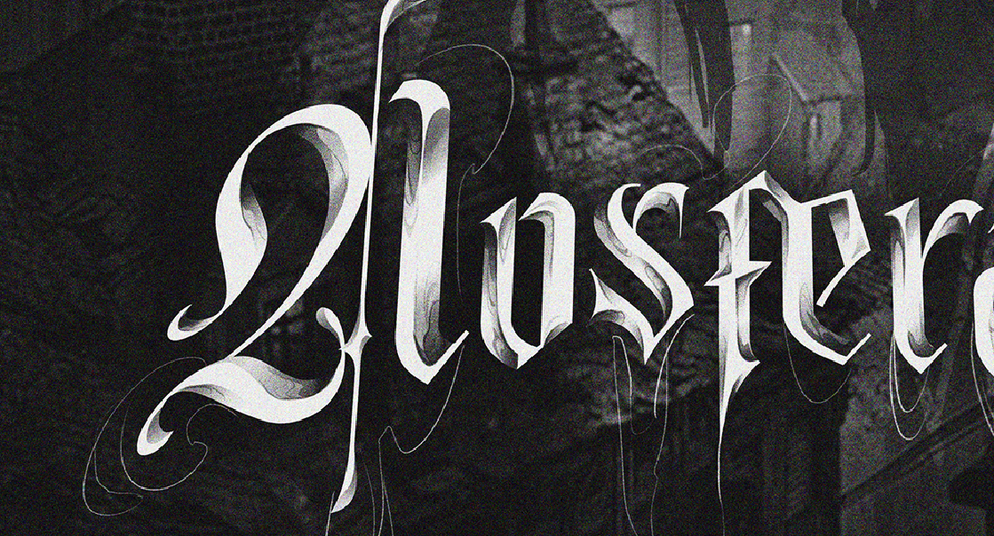 J’ai choisi une typographie (déjà existante) mêlant rondeurs et angles plus anguleux, tout en conservant une réelle élégance. Je souhaitais ce côté très esthétique de la typographie, qui vient se mêler avec l’atmosphère bien plus lugubre de l’illustration globale. J’ai ajusté la typographie comme je le souhaitais, puis j’y ai apporté du relief avec parcimonie pour créer les angles de chaque lettre et réellement accentuer le caractère de la typographie.